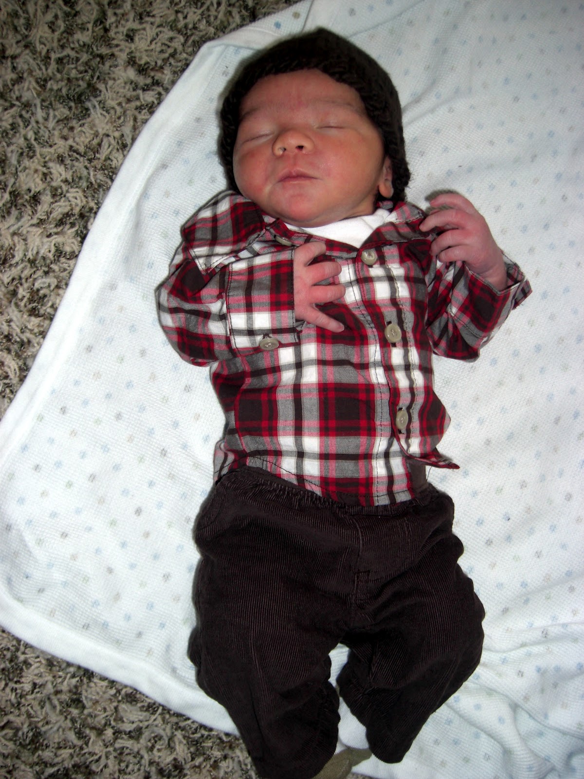 now weighing in at 9 lbs 2 oz! Big kid!!! He has outgrown most of his newborn